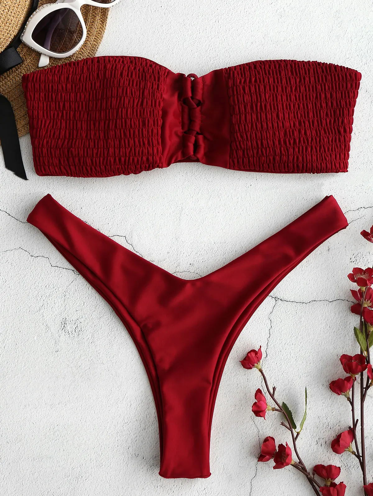 Be the first to review “Off Shoulder Bandeau Solid Pleat Push Up Swimsuit”